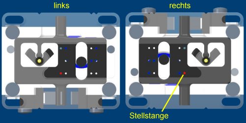 federnde Schalthebel von einem Zapfen am Schieber (rot) gegensinnig bewegt werden. Abhängig vom